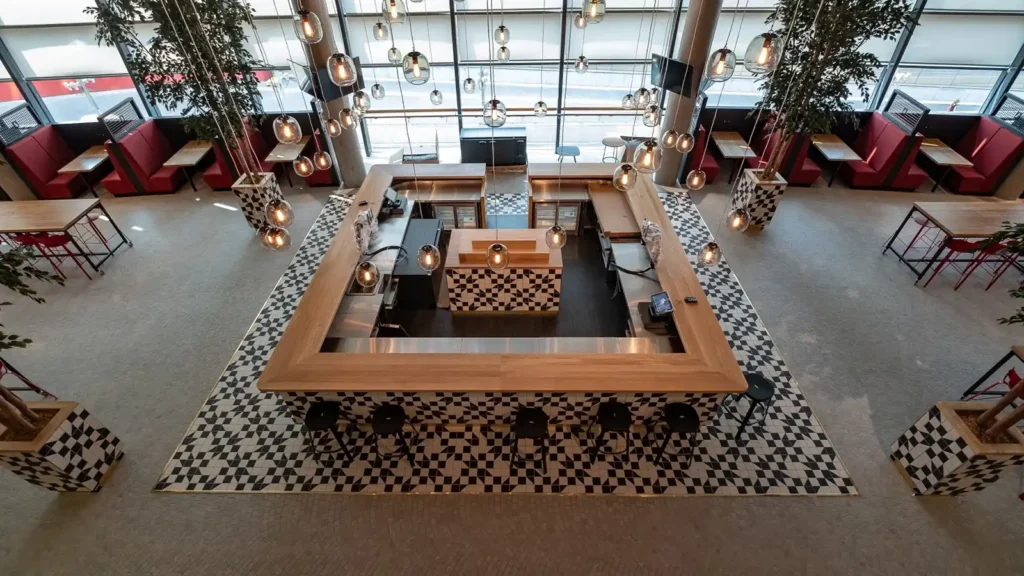 Central to the fit-out was the integration of an open-flame pizza oven, bringing theatre and authenticity to the dining environment while meeting stringent catering and safety standards. The industrial-themed interior incorporated bespoke lighting schemes, including pendant and accent lighting, all integrated into a coordinated electrical and control network to create dynamic atmospheres while maintaining energy efficiency and regulatory compliance.