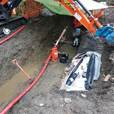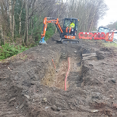 Prior to excavation, all underground services were located using CAT scanning equipment to accurately identify existing cables and prevent damage during groundworks. Excavation was carried out using a mini-digger under controlled conditions to expose the relevant HV circuits.