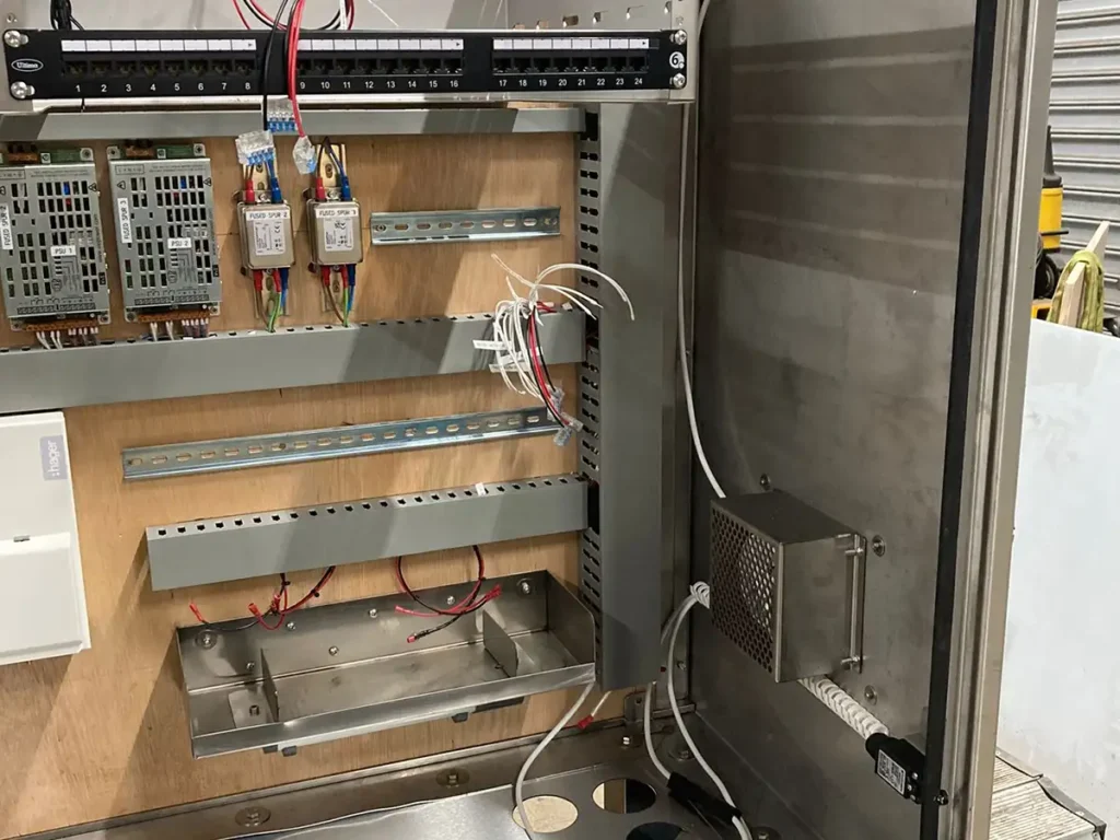 Transformers were installed within the panels where voltage conversion or electrical isolation was required, with careful consideration given to load capacity, protection systems, and compliance with relevant electrical standards. Ventilation and thermal management solutions were also incorporated where necessary, including filtered ventilation units and cooling fans, to maintain safe operating temperatures for sensitive electrical equipment.