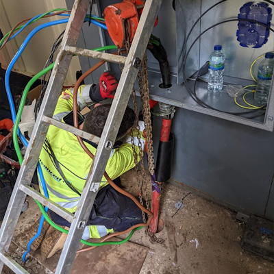 All joints and terminations were completed to high-voltage standards, followed by HV pressure testing and full inspection to verify integrity prior to energisation.
