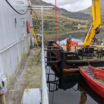 High-voltage shore supply works were undertaken at Loch Goil to install a new subsea electrical connection from the onshore network to a barge moored offshore. The project enabled the delivery of reliable shore power to marine infrastructure, reducing reliance on onboard generation.