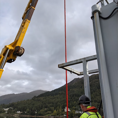 A new 3.6 kV subsea shore supply was installed at Loch Goil, connecting onshore transformer infrastructure to an offshore barge through sealed HV terminations and pressure-tested cable systems.